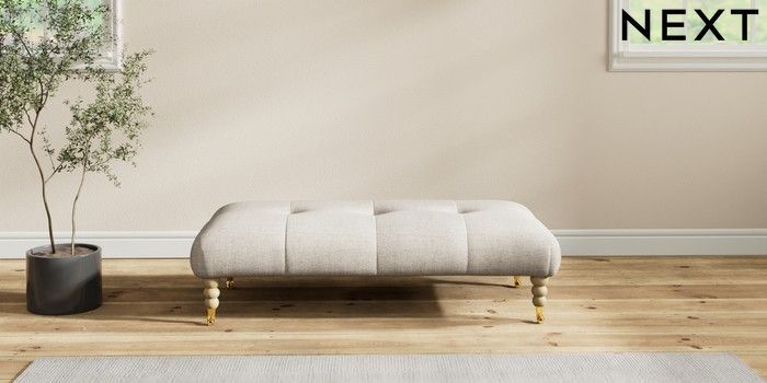 7.2.10 Erin Buttoned Back Deep Relaxed Sit Extra Large Footstool Chunky Weave Mid Natural High Classic Turned Brass Castor - Light | Made Click here to use our website with more accessibility support, for example screen readers