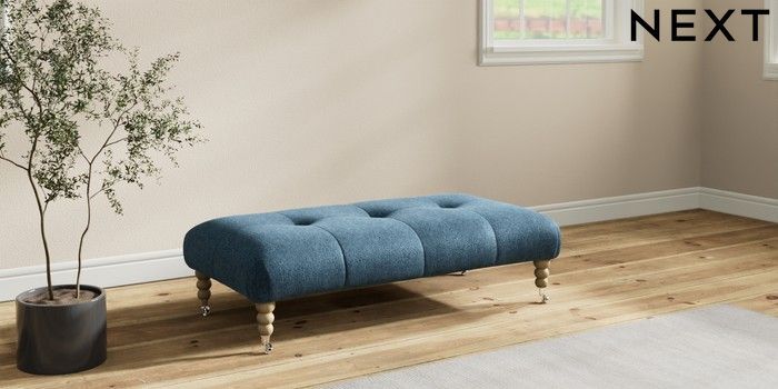 7.2.10 Erin Buttoned Back Deep Relaxed Sit Extra Large Footstool Cotswold Chenille Dark Blue High Classic Turned Chrome Castor - Light | Made Click here to use our website with more accessibility support, for example screen readers