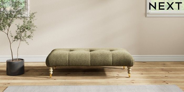 7.2.10 Erin Buttoned Back Deep Relaxed Sit Extra Large Footstool Cotswold Chenille Dark Green High Classic Turned Brass Castor - Light | Made Click here to use our website with more accessibility support, for example screen readers