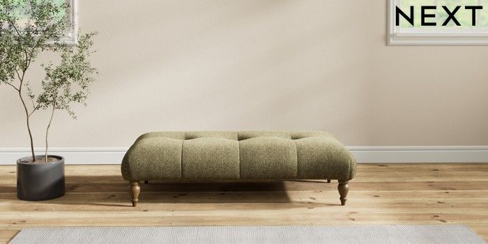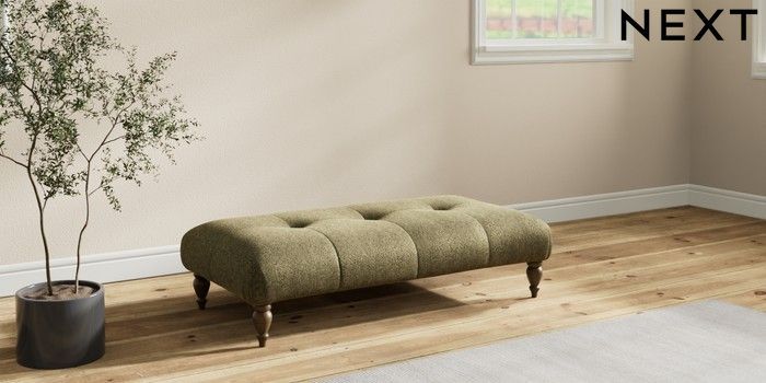 7.2.10 Erin Buttoned Back Deep Relaxed Sit Extra Large Footstool Cotswold Chenille Dark Green High Classic Turned - Mid | Made Click here to use our website with more accessibility support, for example screen readers