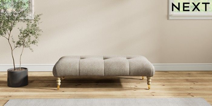 7.2.10 Erin Buttoned Back Deep Relaxed Sit Extra Large Footstool Cotswold Chenille Mid Mink Brown High Classic Turned Brass Castor - Light | Made Click here to use our website with more accessibility support, for example screen readers