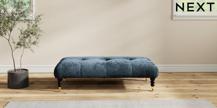 7.2.10 Erin Buttoned Back Deep Relaxed Sit Extra Large Footstool Distressed Velour Midnight Blue High Classic Turned Brass Castor - Dark | Made Click here to use our website with more accessibility support, for example screen readers