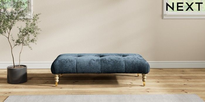 7.2.10 Erin Buttoned Back Deep Relaxed Sit Extra Large Footstool Distressed Velour Midnight Blue High Classic Turned Brass Castor - Light | Made Click here to use our website with more accessibility support, for example screen readers