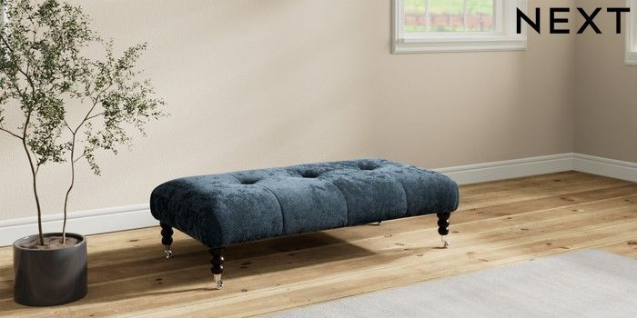 7.2.10 Erin Buttoned Back Deep Relaxed Sit Extra Large Footstool Distressed Velour Midnight Blue High Classic Turned Chrome Castor - Dark | Made Click here to use our website with more accessibility support, for example screen readers