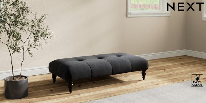 7.2.10 Erin Buttoned Back Deep Relaxed Sit Extra Large Footstool Fine Chenille Easy Clean Black High Classic Turned - Dark | Made Click here to use our website with more accessibility support, for example screen readers