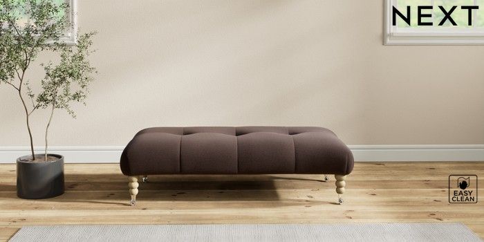 7.2.10 Erin Buttoned Back Deep Relaxed Sit Extra Large Footstool Fine Chenille Easy Clean Chocolate Brown High Classic Turned Chrome Castor - Light | Made Click here to use our website with more accessibility support, for example screen readers