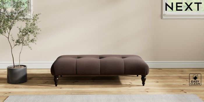 7.2.10 Erin Buttoned Back Deep Relaxed Sit Extra Large Footstool Fine Chenille Easy Clean Chocolate Brown High Classic Turned - Dark | Made Click here to use our website with more accessibility support, for example screen readers