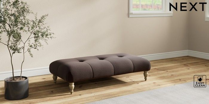 7.2.10 Erin Buttoned Back Deep Relaxed Sit Extra Large Footstool Fine Chenille Easy Clean Chocolate Brown High Classic Turned - Light | Made Click here to use our website with more accessibility support, for example screen readers