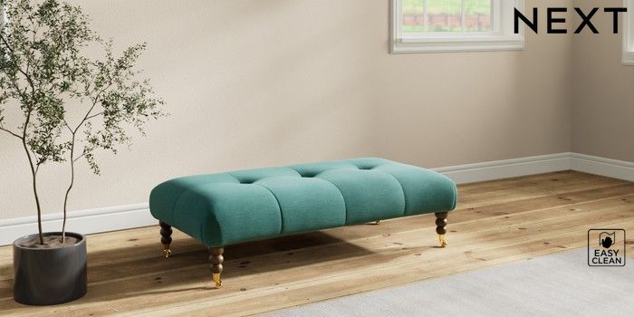 7.2.10 Erin Buttoned Back Deep Relaxed Sit Extra Large Footstool Fine Chenille Easy Clean Dark Juniper Green High Classic Turned Brass Castor - Mid | Made Click here to use our website with more accessibility support, for example screen readers