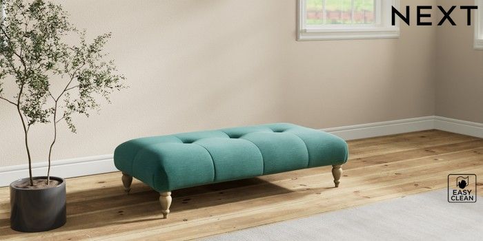 7.2.10 Erin Buttoned Back Deep Relaxed Sit Extra Large Footstool Fine Chenille Easy Clean Dark Juniper Green High Classic Turned - Light | Made Click here to use our website with more accessibility support, for example screen readers