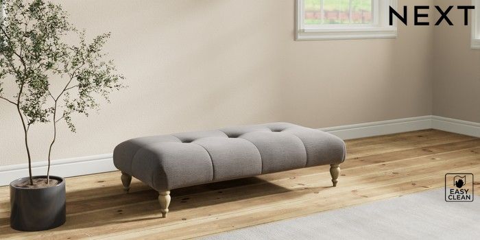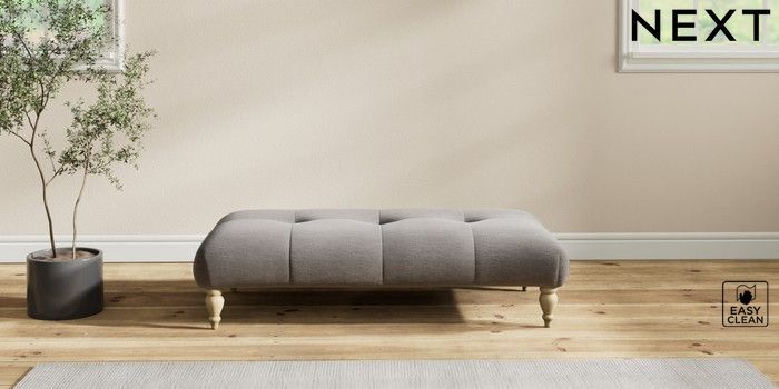 7.2.10 Erin Buttoned Back Deep Relaxed Sit Extra Large Footstool Fine Chenille Easy Clean Dark Smoke Grey High Classic Turned - Light | Made Click here to use our website with more accessibility support, for example screen readers