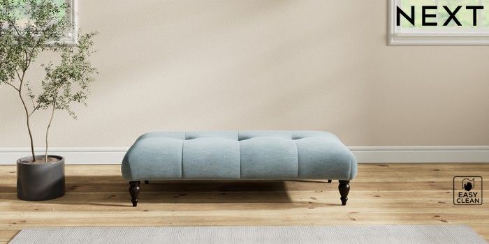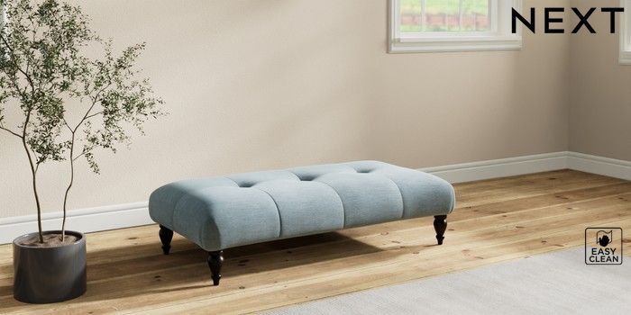 7.2.10 Erin Buttoned Back Deep Relaxed Sit Extra Large Footstool Fine Chenille Easy Clean Mid Blue High Classic Turned - Dark | Made Click here to use our website with more accessibility support, for example screen readers