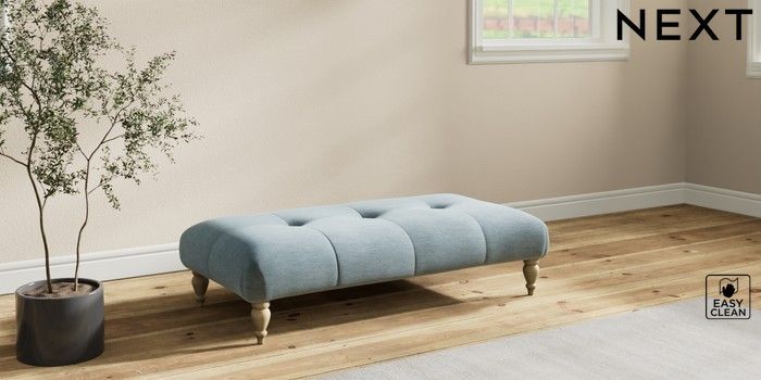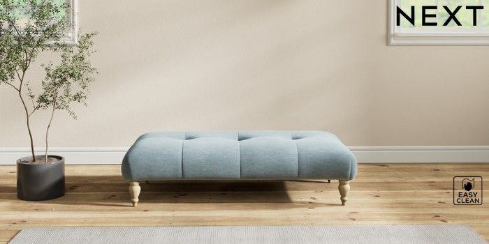 7.2.10 Erin Buttoned Back Deep Relaxed Sit Extra Large Footstool Fine Chenille Easy Clean Mid Blue High Classic Turned - Light | Made Click here to use our website with more accessibility support, for example screen readers