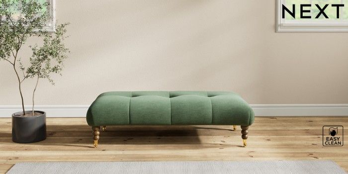 7.2.10 Erin Buttoned Back Deep Relaxed Sit Extra Large Footstool Fine Chenille Easy Clean Mid Khaki Green High Classic Turned Brass Castor - Mid | Made Click here to use our website with more accessibility support, for example screen readers