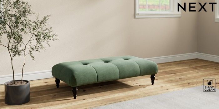 7.2.10 Erin Buttoned Back Deep Relaxed Sit Extra Large Footstool Fine Chenille Easy Clean Mid Khaki Green High Classic Turned - Dark | Made Click here to use our website with more accessibility support, for example screen readers