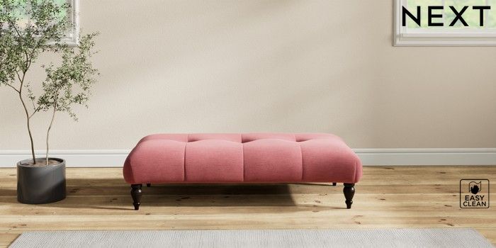 7.2.10 Erin Buttoned Back Deep Relaxed Sit Extra Large Footstool Fine Chenille Easy Clean Mid Pink High Classic Turned - Dark | Made Click here to use our website with more accessibility support, for example screen readers