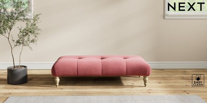 7.2.10 Erin Buttoned Back Deep Relaxed Sit Extra Large Footstool Fine Chenille Easy Clean Mid Pink High Classic Turned - Light | Made Click here to use our website with more accessibility support, for example screen readers