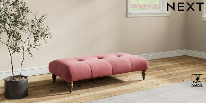 7.2.10 Erin Buttoned Back Deep Relaxed Sit Extra Large Footstool Fine Chenille Easy Clean Mid Pink High Classic Turned - Mid | Made Click here to use our website with more accessibility support, for example screen readers