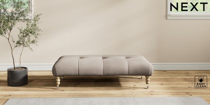 7.2.10 Erin Buttoned Back Deep Relaxed Sit Extra Large Footstool Fine Chenille Easy Clean Mid Taupe Brown High Classic Turned Chrome Castor - Light | Made Click here to use our website with more accessibility support, for example screen readers