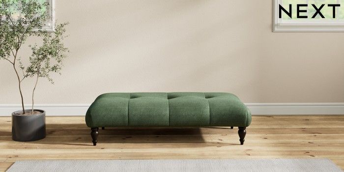 7.2.10 Erin Buttoned Back Deep Relaxed Sit Extra Large Footstool Luxe Chenille Dark Green High Classic Turned - Dark | Made Click here to use our website with more accessibility support, for example screen readers