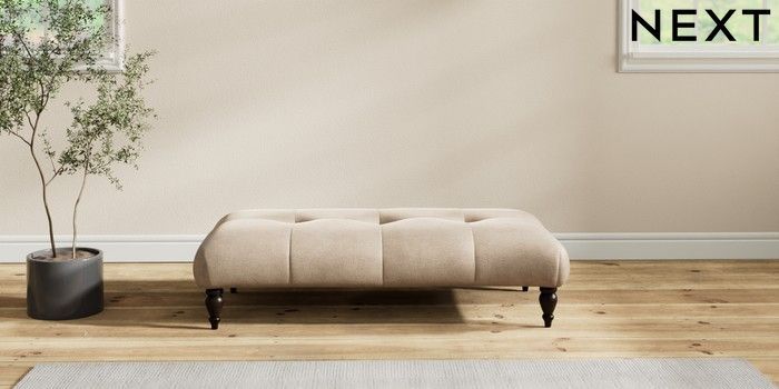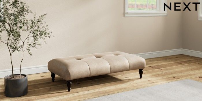 7.2.10 Erin Buttoned Back Deep Relaxed Sit Extra Large Footstool Luxe Chenille Mid Camel Beige High Classic Turned - Dark | Made Click here to use our website with more accessibility support, for example screen readers