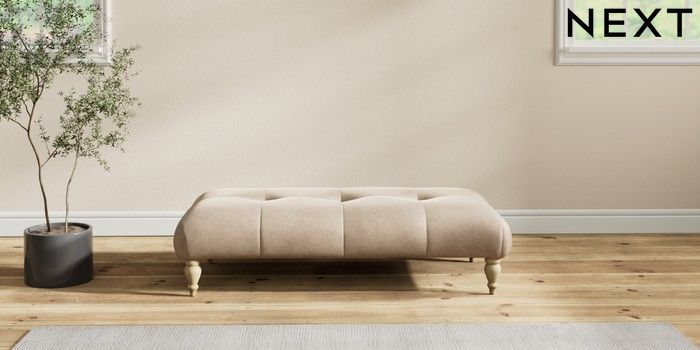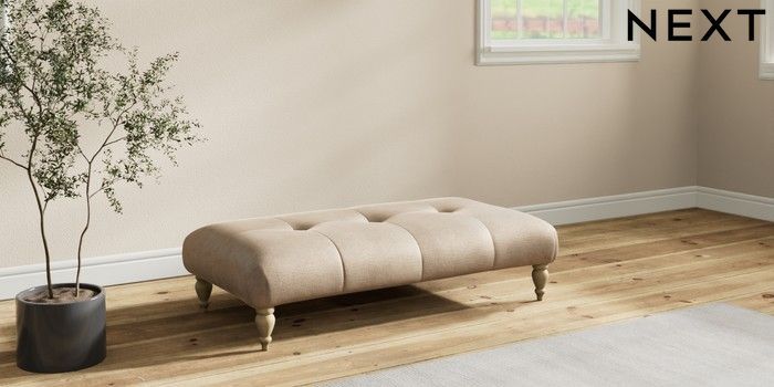7.2.10 Erin Buttoned Back Deep Relaxed Sit Extra Large Footstool Luxe Chenille Mid Camel Beige High Classic Turned - Light | Made Click here to use our website with more accessibility support, for example screen readers