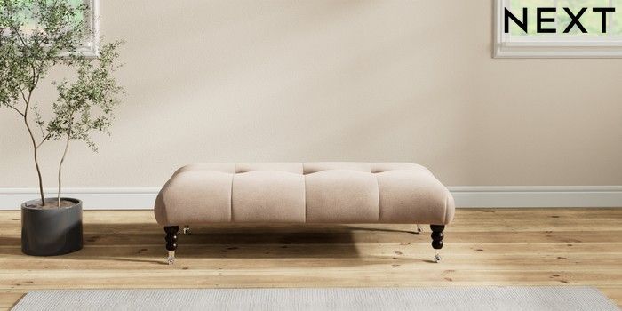 7.2.10 Erin Buttoned Back Deep Relaxed Sit Extra Large Footstool Luxe Chenille Mid Natural High Classic Turned Chrome Castor - Dark | Made Click here to use our website with more accessibility support, for example screen readers