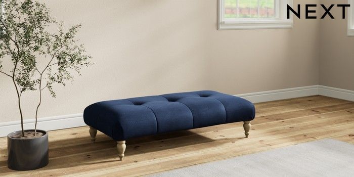7.2.10 Erin Buttoned Back Deep Relaxed Sit Extra Large Footstool Luxe Chenille Navy Blue High Classic Turned - Light | Made Click here to use our website with more accessibility support, for example screen readers