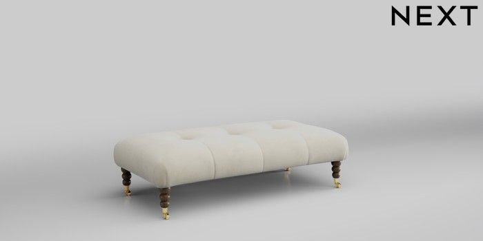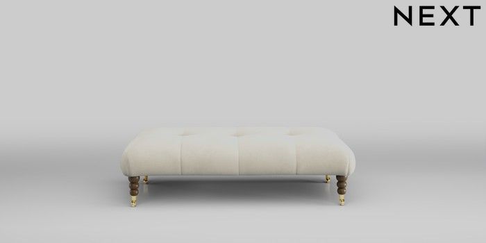 7.2.10 Erin Buttoned Back Deep Relaxed Sit Extra Large Footstool Luxe Chenille Oyster High Classic Turned Brass Castor - Mid | Made Click here to use our website with more accessibility support, for example screen readers