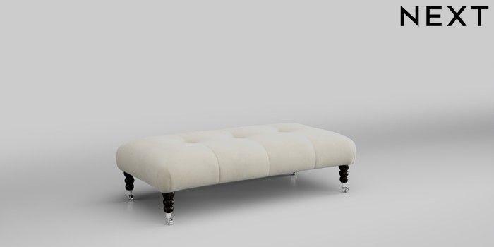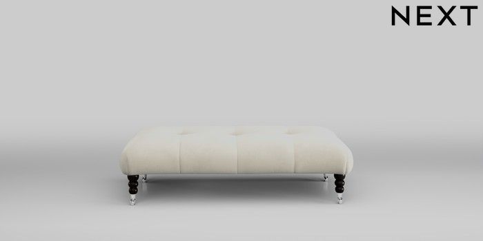 7.2.10 Erin Buttoned Back Deep Relaxed Sit Extra Large Footstool Luxe Chenille Oyster High Classic Turned Chrome Castor - Dark | Made Click here to use our website with more accessibility support, for example screen readers