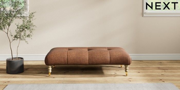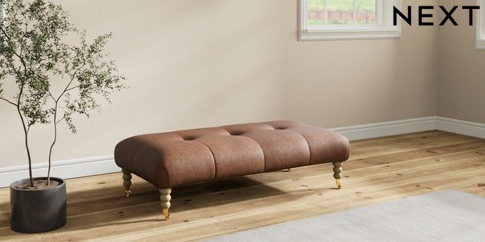 7.2.10 Erin Buttoned Back Deep Relaxed Sit Extra Large Footstool Monza Faux Leather Easy Clean Chestnut Brown High Classic Turned Brass Castor - Light | Made Click here to use our website with more accessibility support, for example screen readers