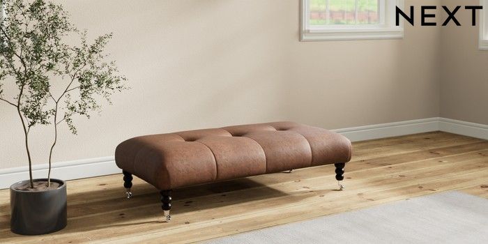 7.2.10 Erin Buttoned Back Deep Relaxed Sit Extra Large Footstool Monza Faux Leather Easy Clean Chestnut Brown High Classic Turned Chrome Castor - Dark | Made Click here to use our website with more accessibility support, for example screen readers
