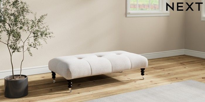 7.2.10 Erin Buttoned Back Deep Relaxed Sit Extra Large Footstool Multi Weave Oyster High Classic Turned Chrome Castor - Dark | Made Click here to use our website with more accessibility support, for example screen readers
