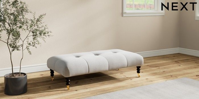 7.2.10 Erin Buttoned Back Deep Relaxed Sit Extra Large Footstool Natural Mix Light Grey High Classic Turned Brass Castor - Dark | Made Click here to use our website with more accessibility support, for example screen readers