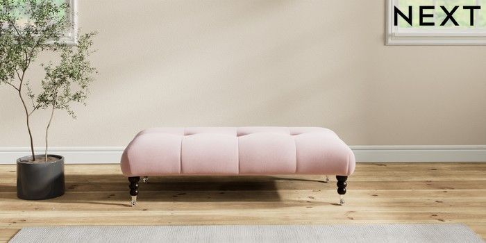 7.2.10 Erin Buttoned Back Deep Relaxed Sit Extra Large Footstool Natural Mix Light Rose Pink High Classic Turned Chrome Castor - Dark | Made Click here to use our website with more accessibility support, for example screen readers