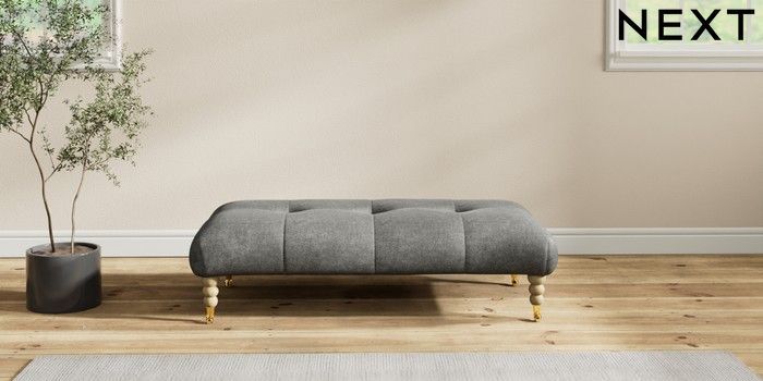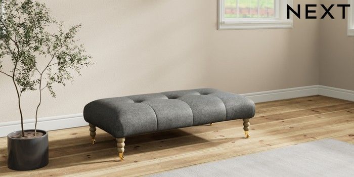 7.2.10 Erin Buttoned Back Deep Relaxed Sit Extra Large Footstool Plush Chenille Dark Grey High Classic Turned Brass Castor - Light | Made Click here to use our website with more accessibility support, for example screen readers
