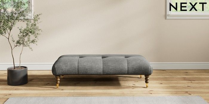 7.2.10 Erin Buttoned Back Deep Relaxed Sit Extra Large Footstool Plush Chenille Dark Grey High Classic Turned Brass Castor - Mid | Made Click here to use our website with more accessibility support, for example screen readers