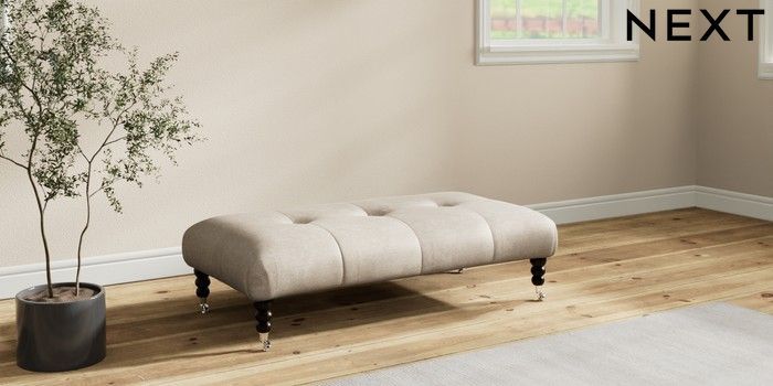 7.2.10 Erin Buttoned Back Deep Relaxed Sit Extra Large Footstool Plush Chenille Light Natural High Classic Turned Chrome Castor - Dark | Made Click here to use our website with more accessibility support, for example screen readers