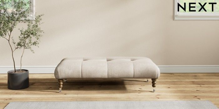 7.2.10 Erin Buttoned Back Deep Relaxed Sit Extra Large Footstool Plush Chenille Light Natural High Classic Turned Chrome Castor - Mid | Made Click here to use our website with more accessibility support, for example screen readers