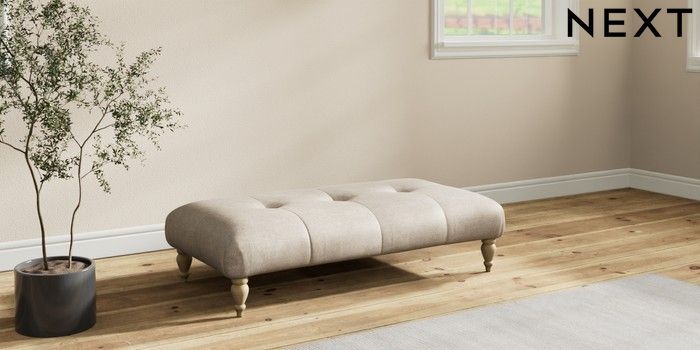 7.2.10 Erin Buttoned Back Deep Relaxed Sit Extra Large Footstool Plush Chenille Light Natural High Classic Turned - Light | Made Click here to use our website with more accessibility support, for example screen readers