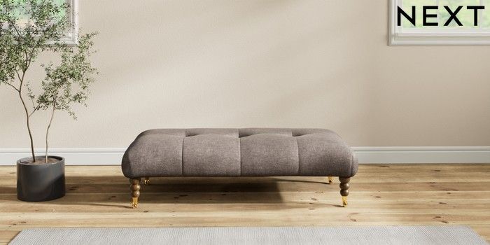 7.2.10 Erin Buttoned Back Deep Relaxed Sit Extra Large Footstool Plush Chenille Mink Brown High Classic Turned Brass Castor - Mid | Made Click here to use our website with more accessibility support, for example screen readers