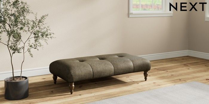 7.2.10 Erin Buttoned Back Deep Relaxed Sit Extra Large Footstool Plush Chenille Moss Green High Classic Turned - Mid | Made Click here to use our website with more accessibility support, for example screen readers