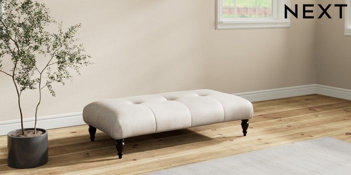7.2.10 Erin Buttoned Back Deep Relaxed Sit Extra Large Footstool Plush Chenille Oyster High Classic Turned - Dark | Made Click here to use our website with more accessibility support, for example screen readers