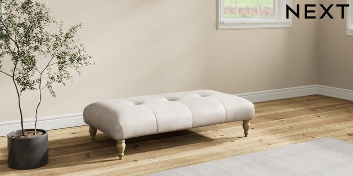 7.2.10 Erin Buttoned Back Deep Relaxed Sit Extra Large Footstool Plush Chenille Oyster High Classic Turned - Light | Made Click here to use our website with more accessibility support, for example screen readers