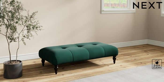 7.2.10 Erin Buttoned Back Deep Relaxed Sit Extra Large Footstool Plush Velvet Easy Clean Bottle Green High Classic Turned - Dark | Made Click here to use our website with more accessibility support, for example screen readers
