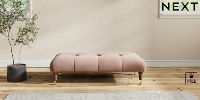 7.2.10 Erin Buttoned Back Deep Relaxed Sit Extra Large Footstool Plush Velvet Easy Clean Mid Natural High Classic Turned Brass Castor - Mid | Made Click here to use our website with more accessibility support, for example screen readers