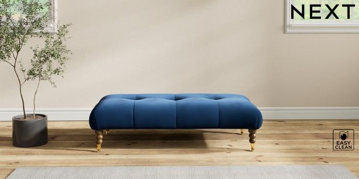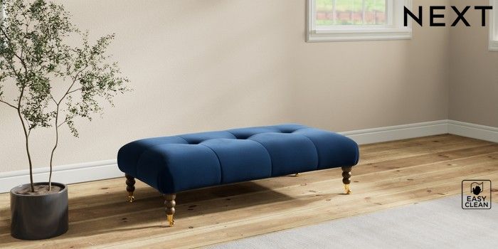 7.2.10 Erin Buttoned Back Deep Relaxed Sit Extra Large Footstool Plush Velvet Easy Clean Navy Blue High Classic Turned Brass Castor - Mid | Made Click here to use our website with more accessibility support, for example screen readers