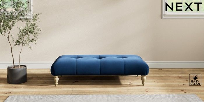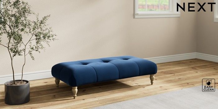 7.2.10 Erin Buttoned Back Deep Relaxed Sit Extra Large Footstool Plush Velvet Easy Clean Navy Blue High Classic Turned - Light | Made Click here to use our website with more accessibility support, for example screen readers