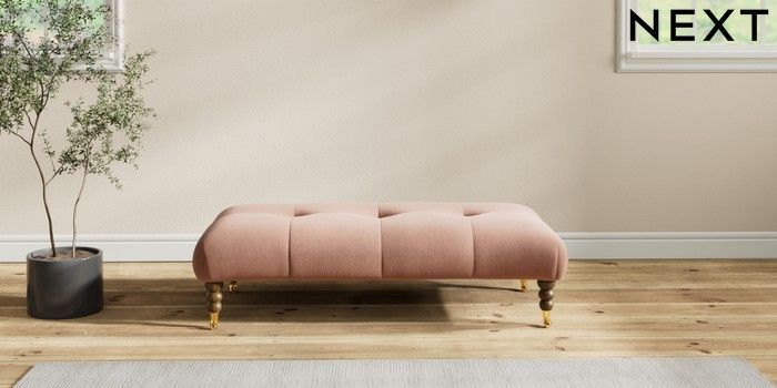7.2.10 Erin Buttoned Back Deep Relaxed Sit Extra Large Footstool Relaxed Linen Look Light Rust Brown High Classic Turned Brass Castor - Mid | Made Click here to use our website with more accessibility support, for example screen readers