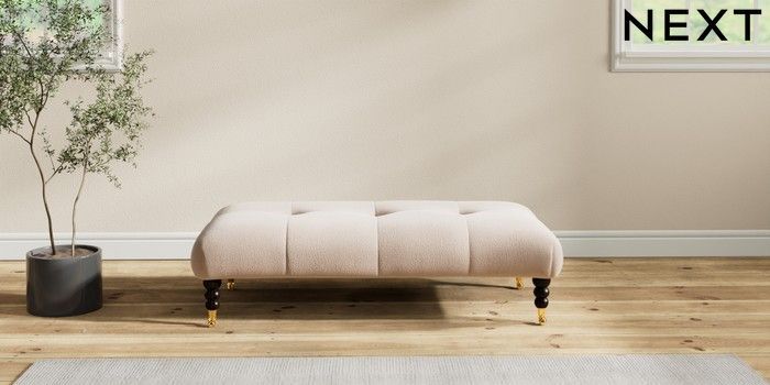 7.2.10 Erin Buttoned Back Deep Relaxed Sit Extra Large Footstool Relaxed Linen Look Mid Natural High Classic Turned Brass Castor - Dark | Made Click here to use our website with more accessibility support, for example screen readers